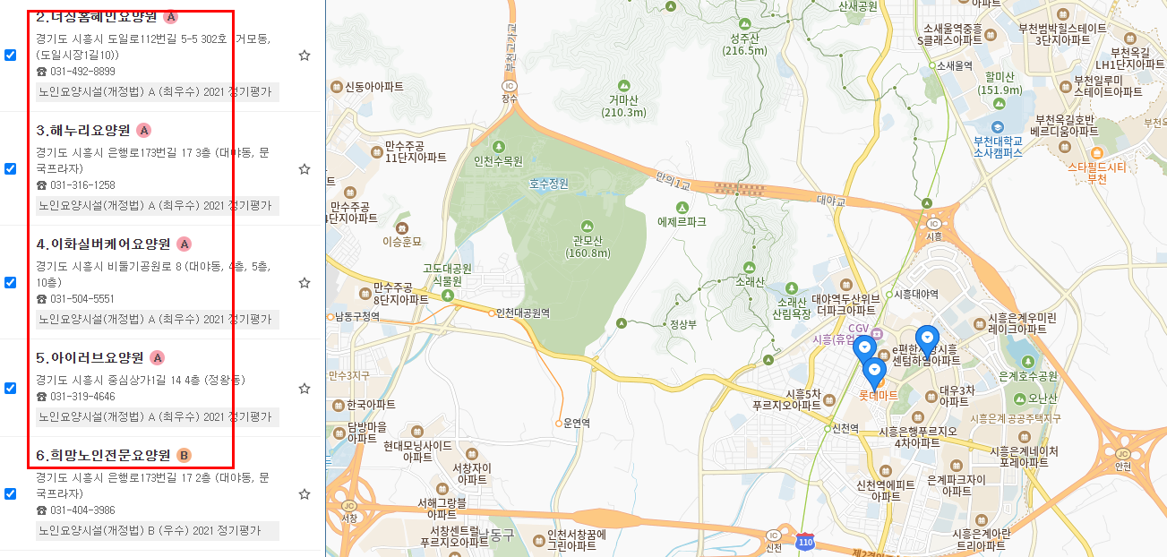 👉 너싱홈혜인요양원, 해누리요양원, 이화실버케어요양원, 아이러브요양원, 희망노인전문요양원은