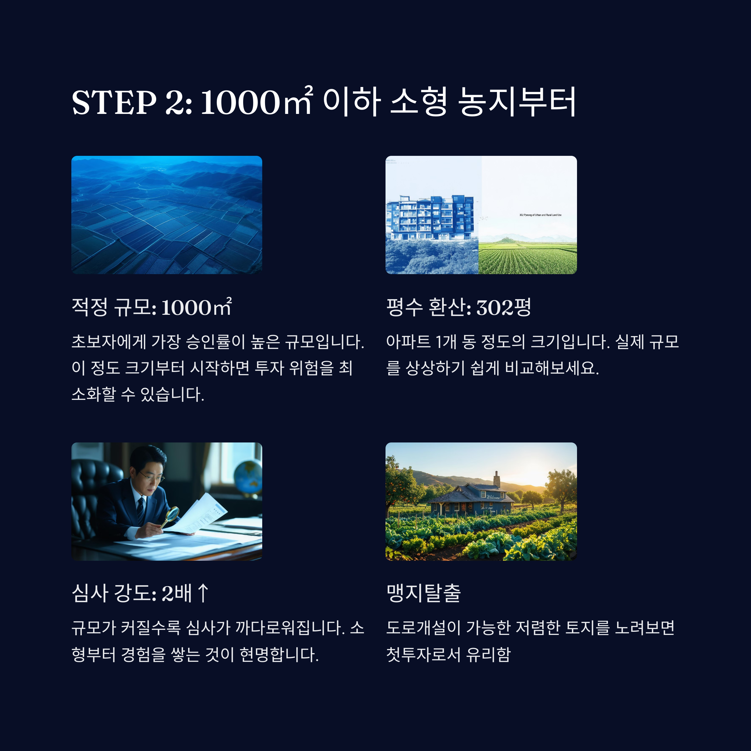 - 1000㎡ 이하 소형 농지는 승인 가능성이 높고