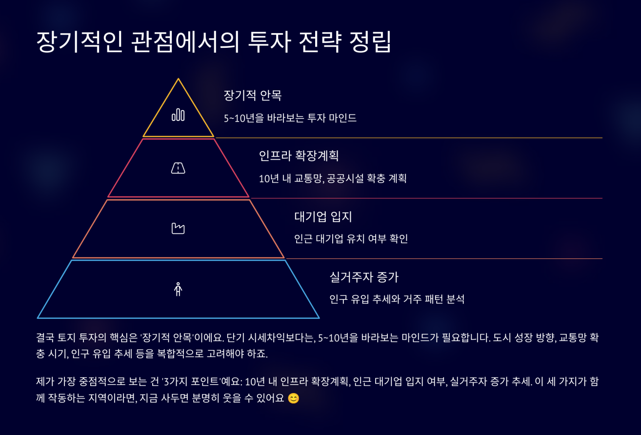 결국 토지 투자의 핵심은 ‘장기적 안목’이에요.