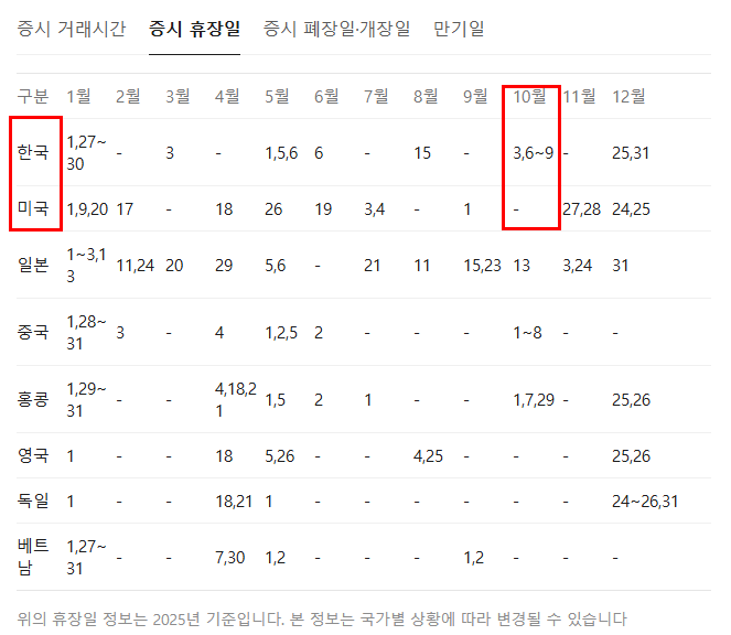 3. 2025년 추석연휴 해외 주식시장 운영🌎